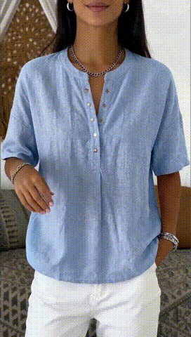 ☀ Women's Casual Henley Collar Linen & Cotton Short-Sleeve Shirt – Breathable, Everyday Essential